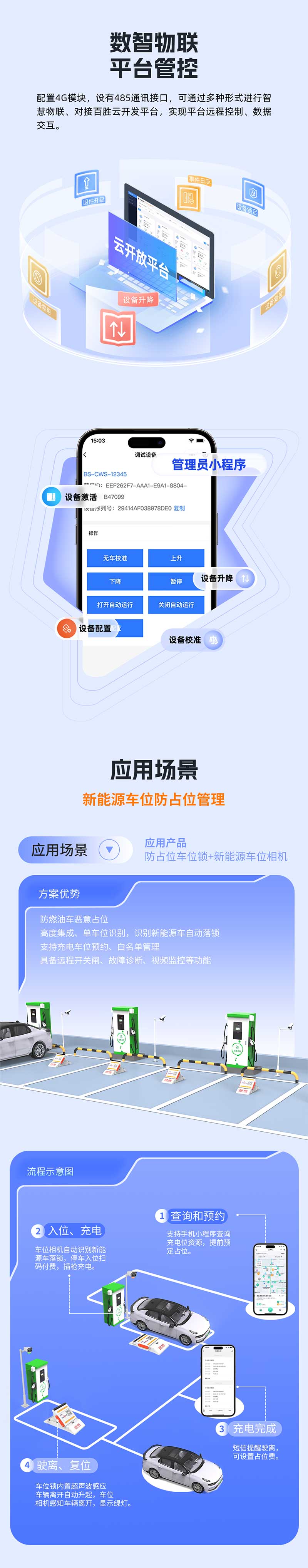 1、機(jī)電一體穩(wěn)定耐用:機(jī)電一體、模塊化設(shè)計,集成車位鎖控制器、通訊模塊,具有設(shè)備安裝便捷、維護(hù)成本低、施工周期短、適用性高特性。