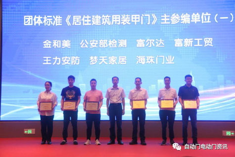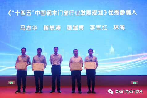 自動門電動門分會會長兼鋼木門窗委員會主任林夕范為團體標(biāo)準(zhǔn)《居住建筑用裝甲門》參編單位頒發(fā)了銅牌,分別為《“十四五”中國鋼木門窗行業(yè)發(fā)展規(guī)劃》突出貢獻單位、優(yōu)秀參編人頒發(fā)了證書。