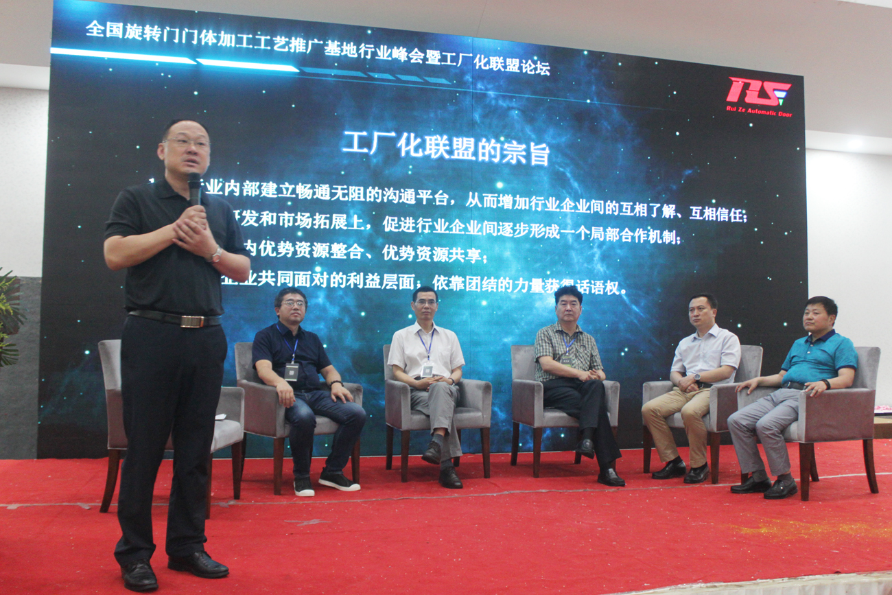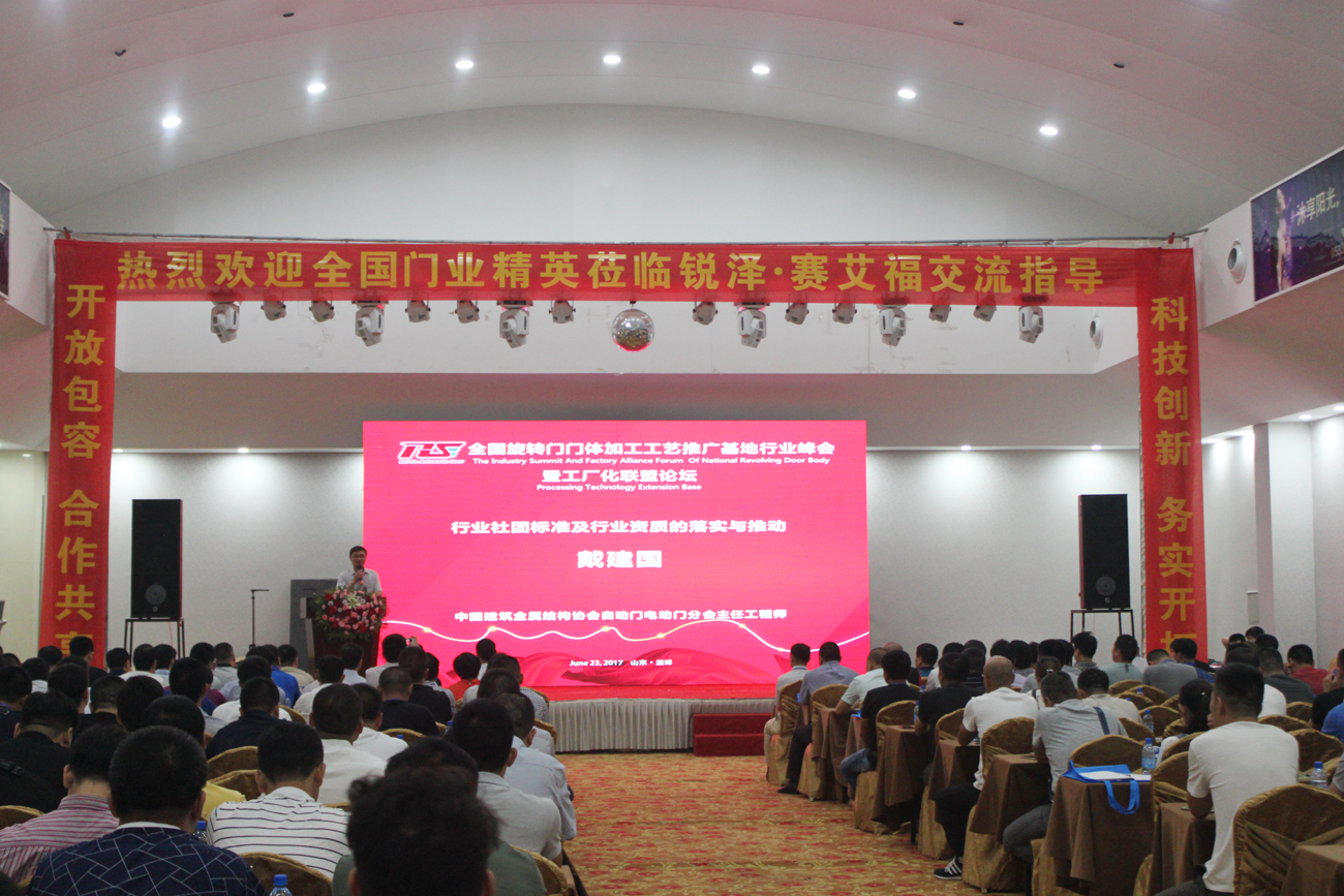 2017年6月23日由中國建筑金屬結構協(xié)會自動門電動門分會、山東銳澤自動門有限公司、山東賽艾福自動化科技股份有限公司主辦的首屆“全國旋轉門門體加工工藝推廣基地行業(yè)峰會暨工廠化聯(lián)盟論壇”在“齊國故都”山東淄博成功召開。