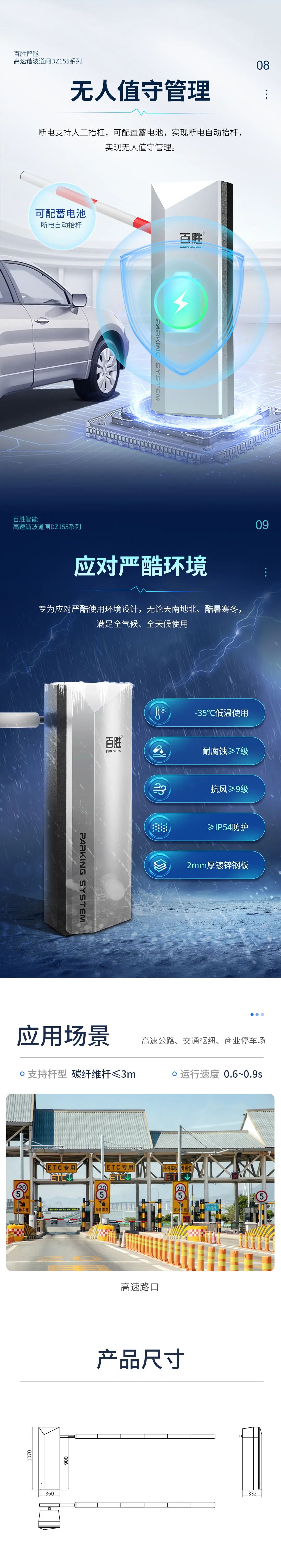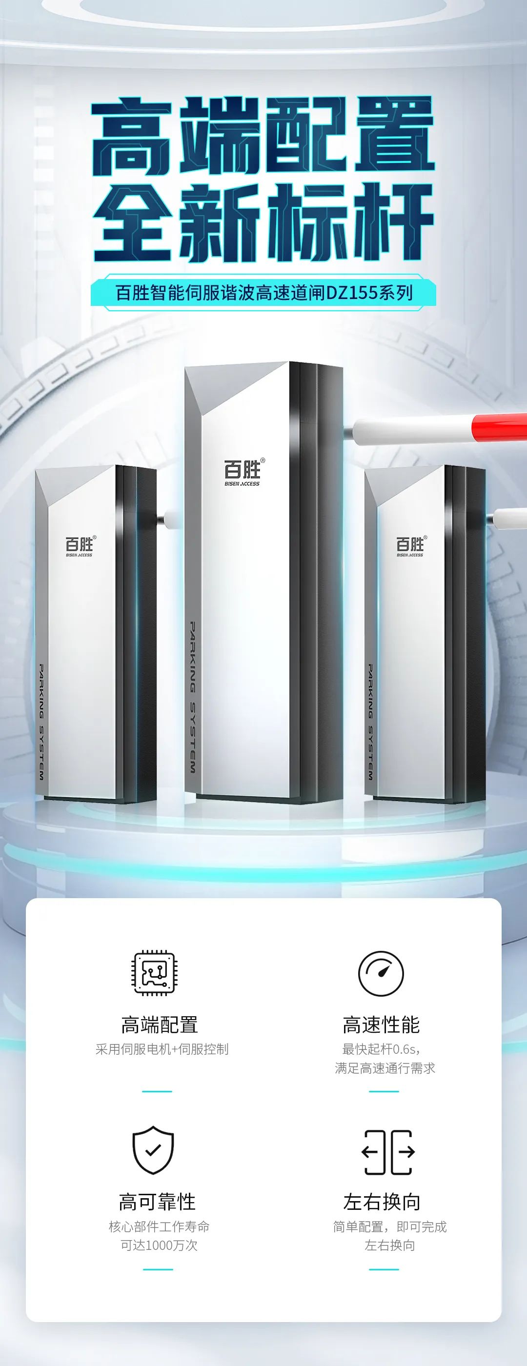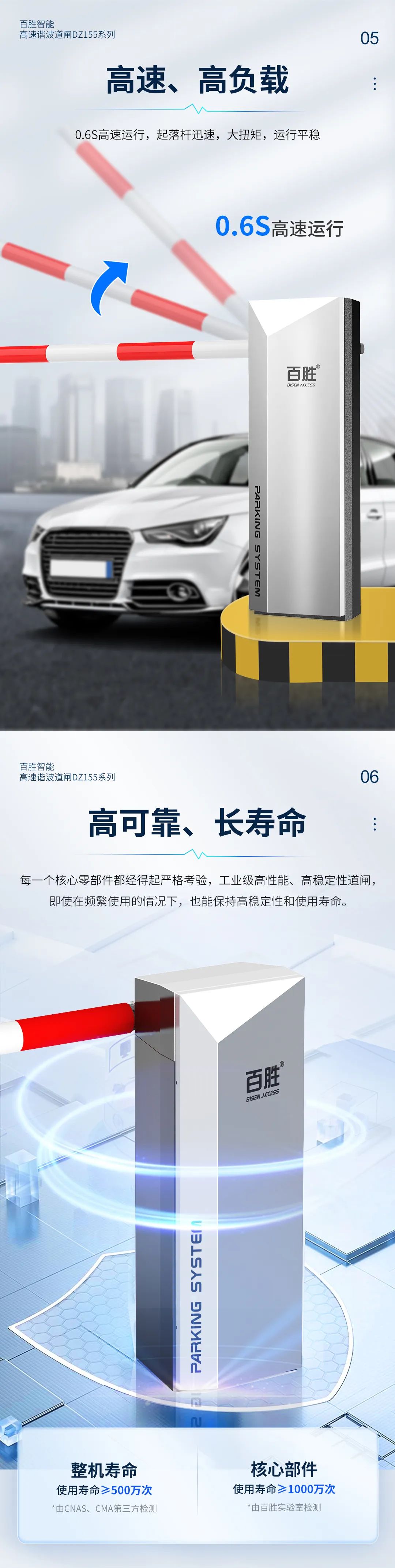 高速、高負(fù)載:0.6S高速運行,起落桿迅速,大扭矩,運行平穩(wěn)
