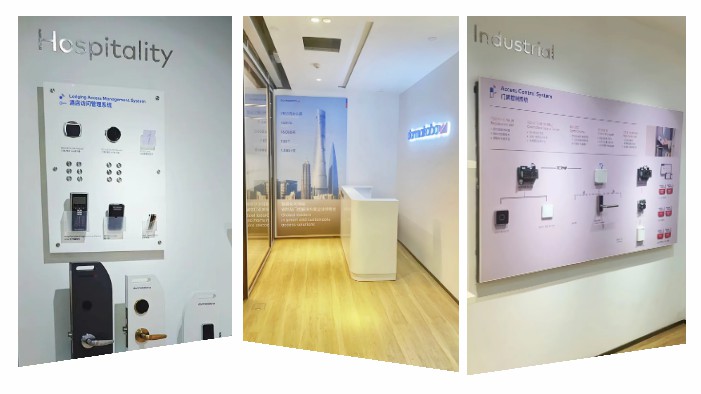 新辦公室不僅是日常運營的基地,也是展示多瑪凱拔綜合解決方案的窗口。這里整合展示了我們?yōu)樯虡I(yè)、工業(yè)、酒店和住宅等垂直市場提供的安防及門控解決方案,涵蓋門用五金、自動化出入口控制系統(tǒng)、智能鎖、門禁系統(tǒng)等品類,旨在為客戶提供安全、靈活且先進的產(chǎn)品組合和服務。