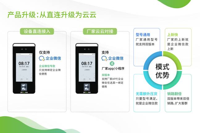 “云云直連”模式讓設(shè)備型號(hào)天然支持企業(yè)微信功能,合作伙伴以及服務(wù)商無(wú)需為不同版本額外備貨,降低庫(kù)存壓力,優(yōu)化供應(yīng)鏈管理。