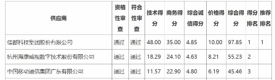項(xiàng)目同時(shí)公示了其他投標(biāo)人的信息,除了中標(biāo)的佳都科技外,??低暭爸袊苿訌V東公司也有投標(biāo)。