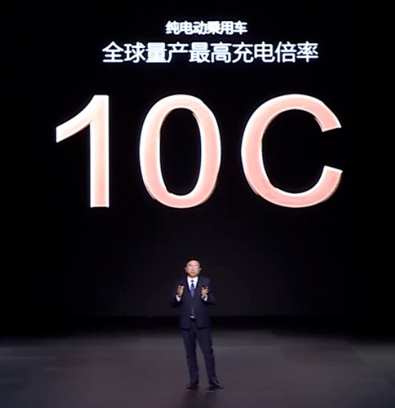 在發(fā)布會上正式發(fā)布全球首個量產乘用車全域1000V高壓架構;全球量產最大充電電流1000A;全球量產最高充電倍速10C,閃充5分鐘,暢行400公里。真正實現(xiàn)兆瓦閃充,油電同速。