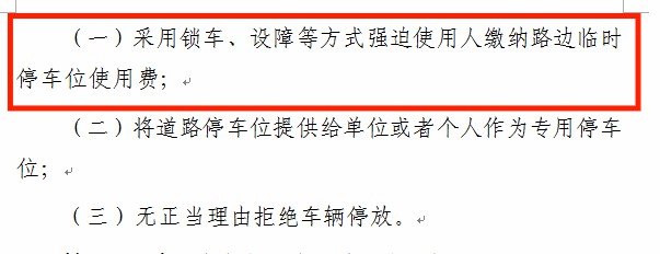 對于車位管理方管理亂象,進一步強調(diào)道路停車管理人員不得采用鎖車、設障等方式強迫使用人繳納路邊臨時停車位使用費;或無正當理由拒絕車輛停放。
