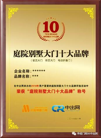 2018年度中國(guó)庭院別墅大門十大品牌