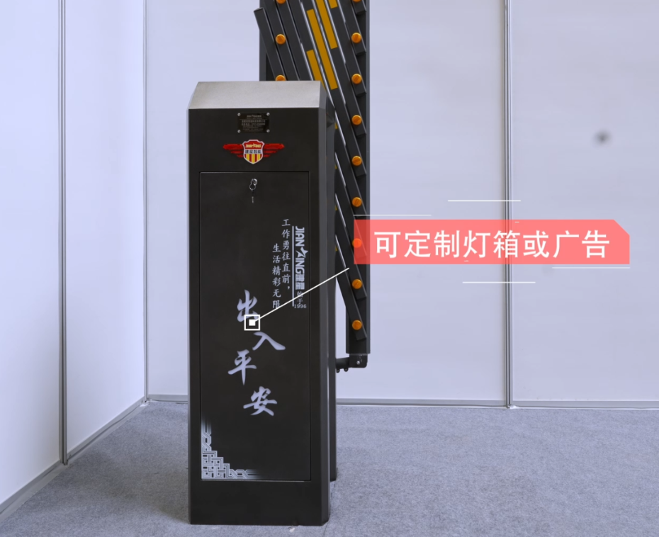 此款產(chǎn)品可定制燈箱或廣告,直流電機(jī)自帶遇阻反彈,經(jīng)典配色,時(shí)尚大氣,超小間距110-120mm,每個(gè)欄柵桿都配備反光圓點(diǎn),緩沖吸盤(pán)全新工藝支撐桿,確保安全穩(wěn)定!