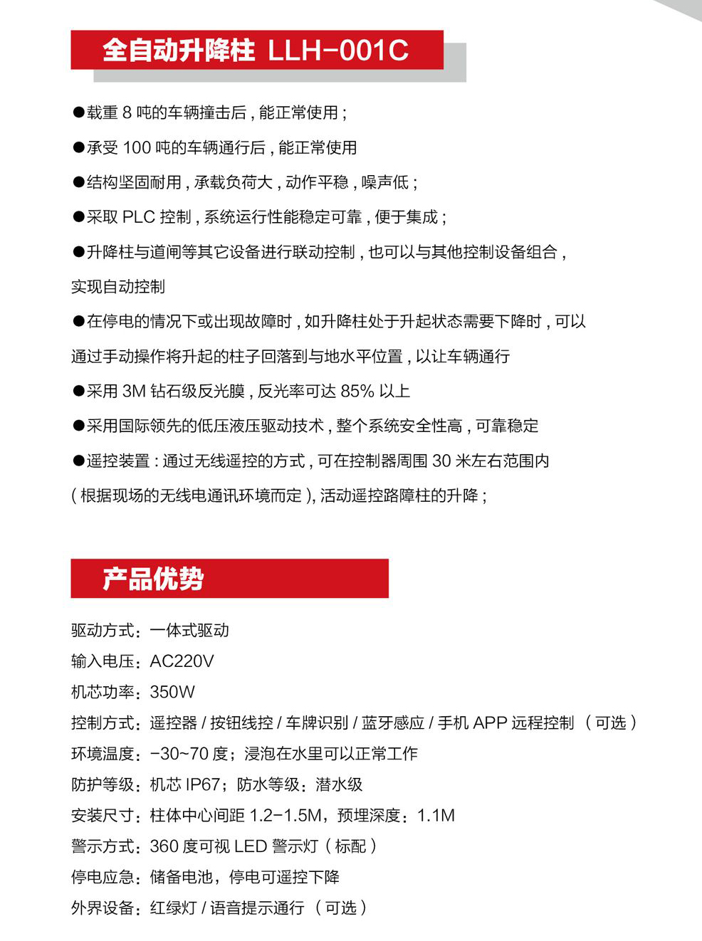 全自動(dòng)升降柱 LLH-001C產(chǎn)品,請(qǐng)仔細(xì)瀏覽本頁(yè)面。如您還有疑問,請(qǐng)撥打服務(wù)電話,我們將免費(fèi)為您提供全自動(dòng)升降柱 LLH-001C的款式、價(jià)格、生產(chǎn)廠家、安裝維修等方面的咨詢服務(wù)。