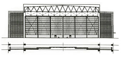 推拉式飛機庫門大門采用下承重,上導(dǎo)向結(jié)構(gòu),大門開啟后多扇重疊在門洞兩側(cè)。大門門扇采用型鋼骨架,面板采用寶鋼產(chǎn)壓型彩板、無氟環(huán)保型聚氨酯發(fā)泡板、聚碳酸酯陽光板三種板型供用戶選擇。開門機采用機電一體化裝置,采用PLC變頻控制。行程限位采用光電感應(yīng)無接觸限位。在開門過程中有聲光報警警示。紅外探測遇阻即停功能。如遇停電可轉(zhuǎn)換到手動開啟狀態(tài)。主要適用于飛機機庫、大型船廠及大型工業(yè)車間。