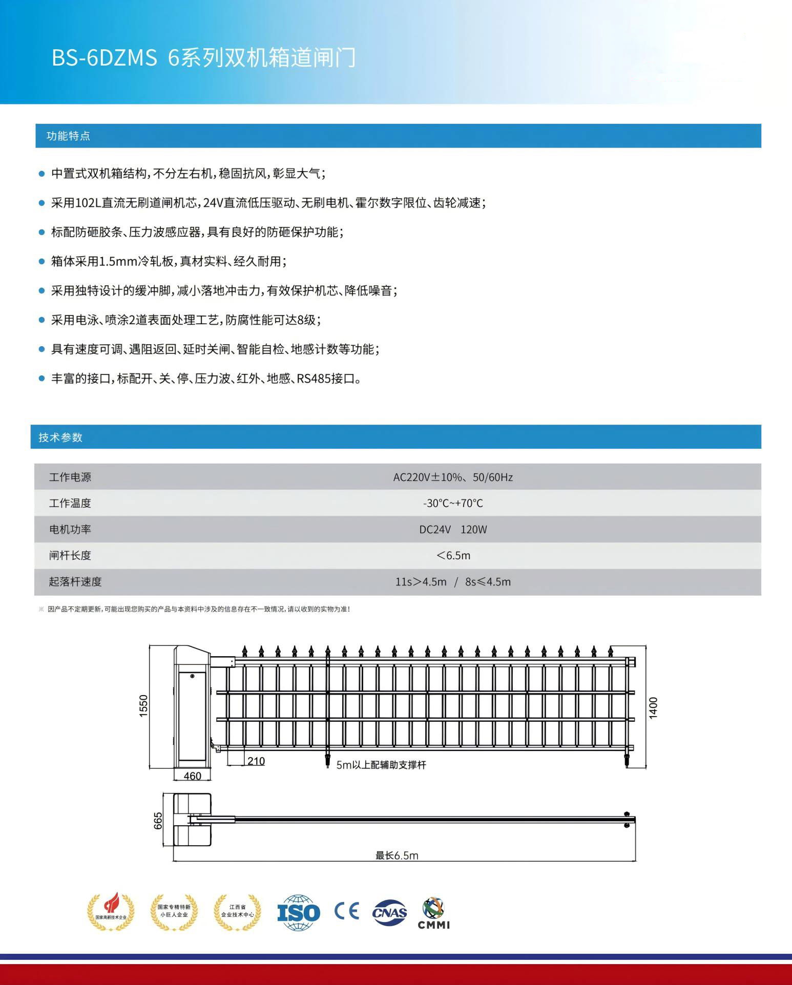 ● 采用102L直流無(wú)刷道閘機(jī)芯,24V直流低壓驅(qū)動(dòng)、無(wú)刷電機(jī)、霍爾數(shù)字限位、齒輪減速;