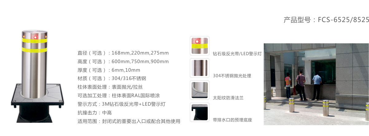 固定功能型護柱用以配套各型號全自動、半自動升降柱或單獨使用,通過專業(yè)的結構及測試認證,可用于高安全性場所使用。是一種真正具有威懾力和打擊犯罪效果出眾的產(chǎn)品。