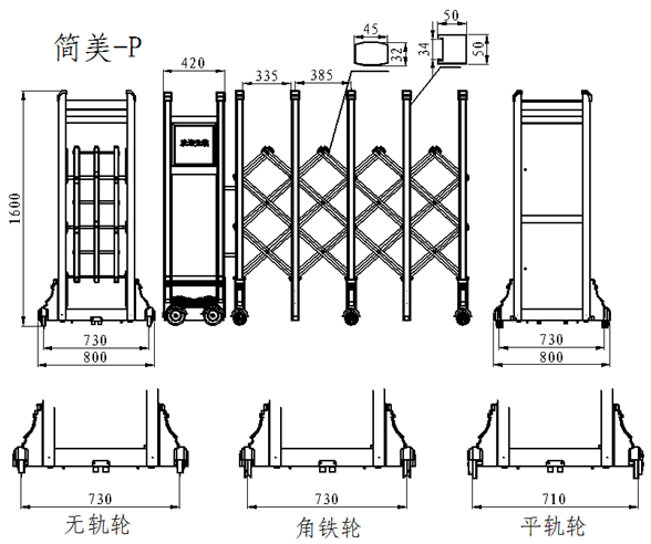 南北德信簡(jiǎn)美-P鋁合金伸縮門(mén)門(mén)體采用公司自行加工優(yōu)質(zhì)不銹鋼和鋁型材等材料制作,主框架采用立體四維平行原理鉸接,伸縮靈活。伸縮門(mén)主要由門(mén)體、驅(qū)動(dòng)器、控制系統(tǒng)構(gòu)成。驅(qū)動(dòng)器采用特種電機(jī)驅(qū)動(dòng),蝸輪蝸桿減速,并設(shè)有手動(dòng)離合器,停電時(shí)可手動(dòng)啟閉,控制系統(tǒng)有臺(tái)控及遙控兩種。可配備滾動(dòng)顯示屏,顯示個(gè)性文字內(nèi)容。還可選配備智能紅外線探頭防碰撞裝置,運(yùn)行時(shí)遇人或異物20-30CM可自動(dòng)返回運(yùn)行,從而保障車(chē)輛及行人的安全。適用于工礦企業(yè)、機(jī)關(guān)院校、娛樂(lè)場(chǎng)所、賓館飯店等庭院圍墻門(mén)。起到美化環(huán)境、改善企業(yè)面貌、提升企業(yè)形象;有助于營(yíng)造文明社會(huì)、文明企業(yè)、文明城市氣氛;