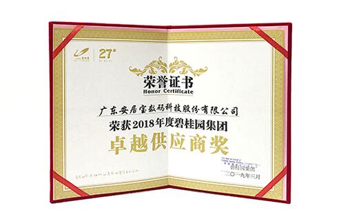 安居寶再次榮獲“2018年度碧桂園集團(tuán)卓越供應(yīng)商”。這項(xiàng)殊榮離不開(kāi)安居寶十年如一日的專注與專業(yè),充分體現(xiàn)了碧桂園集團(tuán)對(duì)安居寶的肯定以及對(duì)未來(lái)合作的信心。至此,安居寶與碧桂園集團(tuán)建立全面深入,互利共贏的戰(zhàn)略合作關(guān)系已達(dá)10余年。此外,公司“安居小寶”智能家居也受到了碧桂園的高度認(rèn)可,目前為止,“安居小寶”智能家居已在碧桂園旗下1300余個(gè)樓盤推廣使用。