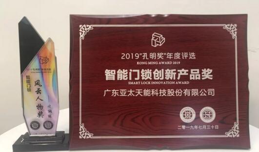 7月30日,2019全球智能門鎖企業(yè)家峰會在深圳召開。會上齊聚了國內(nèi)外智能鎖行業(yè)的眾多專家、精英企業(yè)代表。亞太天能憑借卓越的創(chuàng)新設(shè)計突出重圍,斬獲2019“孔明獎”創(chuàng)新獎與風云人物獎兩項大獎。