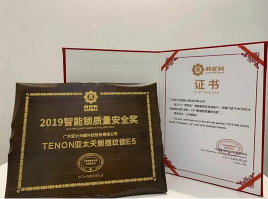 2019“葵花獎(jiǎng)”智能鎖質(zhì)量安全獎(jiǎng)授予 亞太天能E5指紋鎖 可謂真正實(shí)至名歸!