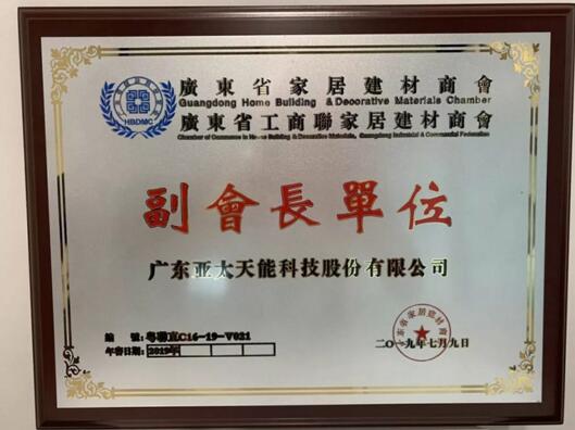 亞太天能榮任廣東省家居建材商會(huì),廣東省工商聯(lián)家居建材商會(huì)副會(huì)長單位,由工業(yè)設(shè)計(jì)大師,亞太天能合伙人洗燃全權(quán)代表上臺(tái)接受授牌。