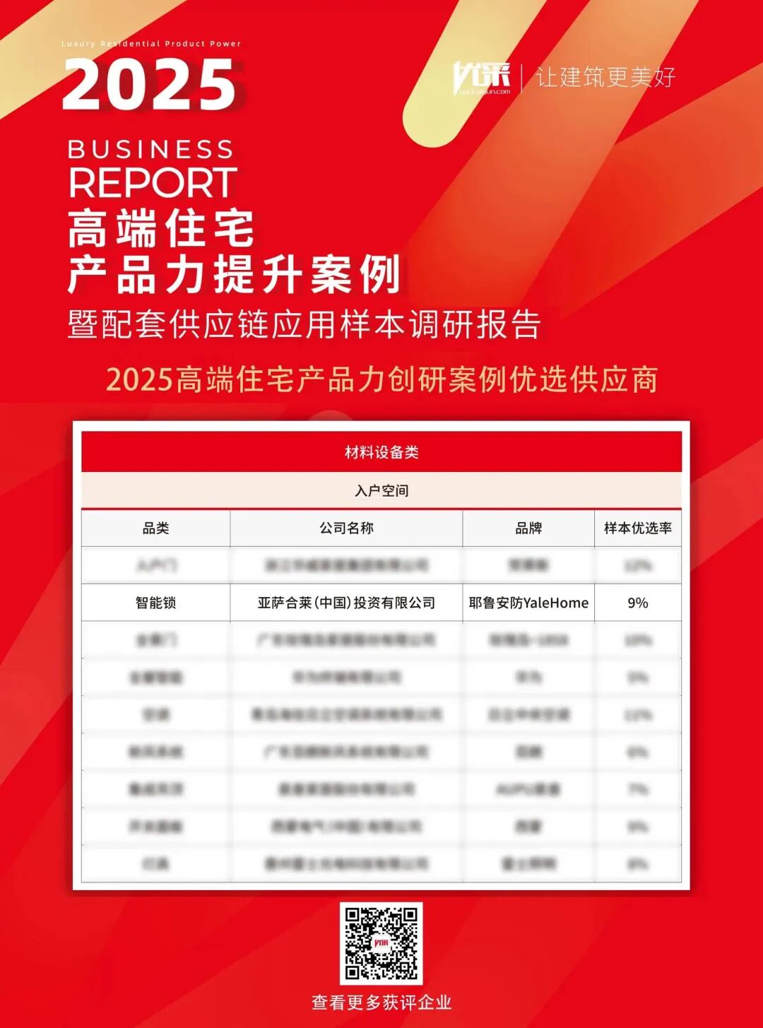 近日,亞薩合萊旗下品牌Yale耶魯榮膺「2025高端住宅產(chǎn)品力創(chuàng)研案例優(yōu)選供應(yīng)商品牌」,在2025中國(guó)房地產(chǎn)企業(yè)品牌價(jià)值測(cè)評(píng)成果發(fā)布會(huì)暨第十五屆房地產(chǎn)品牌發(fā)展高峰論壇上再獲行業(yè)權(quán)威認(rèn)可!此次論壇由中國(guó)房地產(chǎn)業(yè)協(xié)會(huì)指導(dǎo),上海易居房地產(chǎn)研究院、克而瑞集團(tuán)聯(lián)合主辦。作為全球智慧安防領(lǐng)域的百年品牌,亞薩合萊旗下品牌Yale耶魯憑借卓越的產(chǎn)品品質(zhì)、深厚的技術(shù)積淀及在高端住宅場(chǎng)景的出色應(yīng)用,成為智能鎖品類(lèi)中備受行業(yè)認(rèn)可的標(biāo)桿力量。