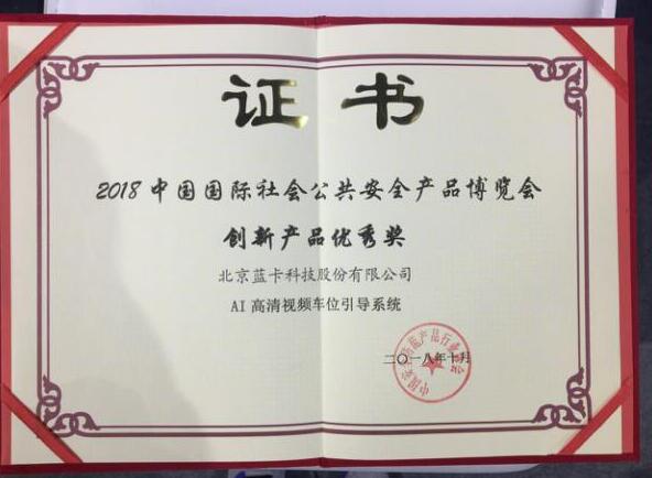 2018年10月23日,作為展會(huì)的重要活動(dòng)之一,2018北京安博會(huì)優(yōu)秀創(chuàng)新產(chǎn)品與優(yōu)秀解決方案頒獎(jiǎng)儀式同步舉行。藍(lán)卡科技AI高清視頻車位引導(dǎo)系統(tǒng)榮獲此屆安博會(huì)優(yōu)秀創(chuàng)新產(chǎn)品獎(jiǎng)。