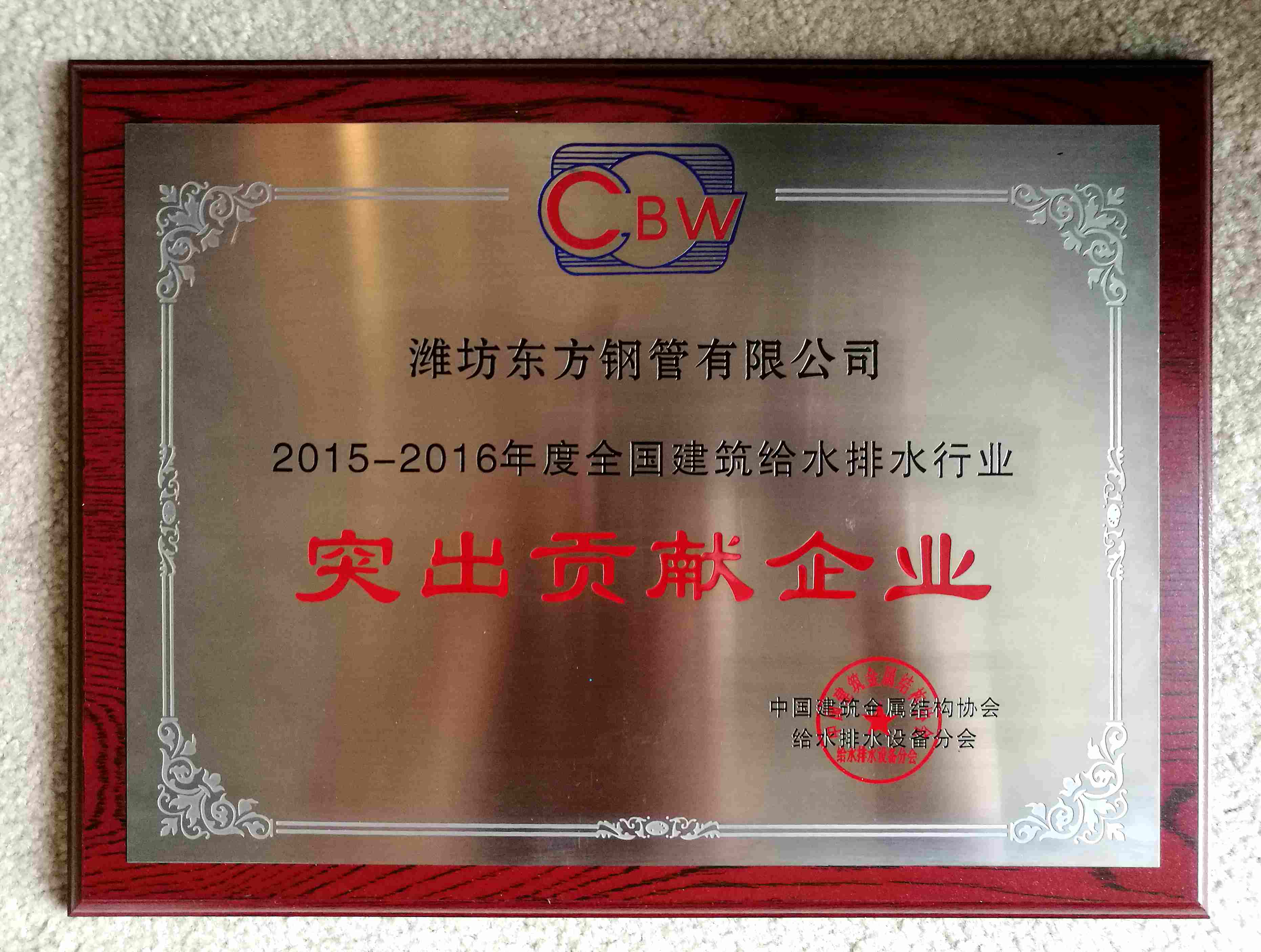 2017年9月7日,“2017年軍民融合給水排水技術(shù)研討會”在上海國際會展中心圓滿舉辦,濰坊東方鋼管有限公司作為中國管道商務(wù)網(wǎng)理事單位應(yīng)邀參會。濰坊東方鋼管有限公司榮獲“行業(yè)名牌”和“突出企業(yè)貢獻獎”!