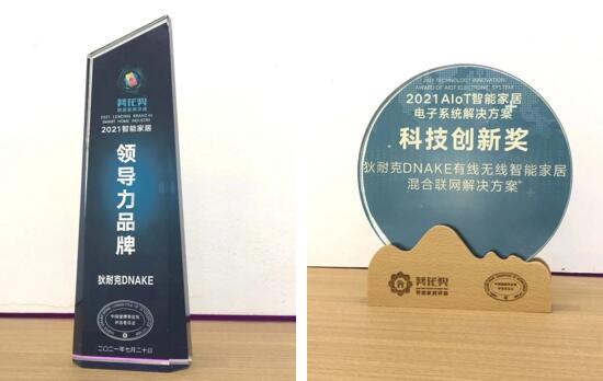 展會(huì)期間,“葵花獎(jiǎng)?lì)C獎(jiǎng)典禮暨首屆智能家居生態(tài)峰會(huì)”同步舉行,會(huì)上,狄耐克實(shí)力榮獲“2021智能家居領(lǐng)導(dǎo)力品牌獎(jiǎng)”等四大獎(jiǎng)項(xiàng),其中,狄耐克有線無線智能家居混合聯(lián)網(wǎng)解決方案榮獲“2021 AIoT智能家居電子系統(tǒng)解決方案科技創(chuàng)新獎(jiǎng)”,狄耐克智慧中控屏Pro榮獲“2021智能家居智能面板科技創(chuàng)新獎(jiǎng)”和“2021智能家居工業(yè)設(shè)計(jì)獎(jiǎng)”。