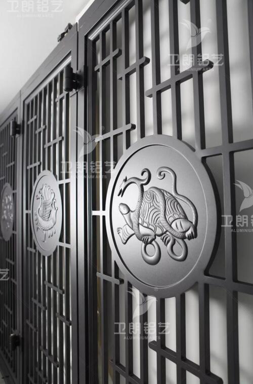 在7月8日成功舉辦的“朗原集團(tuán)2019新品發(fā)布會”上,作為衛(wèi)朗鋁藝今年夏季四件新品中,最富有中國古代特色元素的一款,“宸歌”系列庭院大門栩栩如生的細(xì)節(jié)勾勒,尊貴又富含威嚴(yán)的四圣獸外觀,一經(jīng)揭幕就受到了眾多經(jīng)銷商朋友的認(rèn)可和青睞。