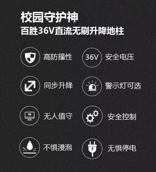 百勝36V直流無(wú)刷升降地柱,憑借36V安全電壓+直流無(wú)刷電機(jī)的動(dòng)力組合,由內(nèi)而外的獨(dú)特魅力,短時(shí)間內(nèi)便深受恩寵,C位出道,風(fēng)靡校園市場(chǎng)。