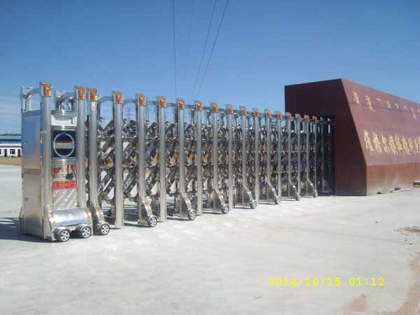 呼和浩特出安智能伸縮門就是門體可以伸縮自由移動,來控制門洞大小、來控制行人或車輛的攔截和放行的一種門。伸縮門主要由門體、驅(qū)動電機(jī),滑道、控制系統(tǒng)構(gòu)成。門體采用優(yōu)質(zhì)不銹鋼及鋁合金專用型材制作,采用平行四邊形原理鉸接,伸縮靈活行程大。驅(qū)動器采用特種電機(jī)驅(qū)動,蝸桿蝸輪減速,并設(shè)有自動離合或手動離合器,自動離合停電時可自動啟閉,手動離合停電時可手動啟閉,控制系統(tǒng)有控制板,按鈕開關(guān),另可根據(jù)需求配備無線遙控裝置??膳鋫錆L動顯示屏,顯示300-500字的顯示內(nèi)容。還可配備智能紅外線探頭防碰撞裝置,遇人或異物20-30CM可自動返回運行,從而保障車輛及行人的安全。電動伸縮門適用于工礦企業(yè)、機(jī)關(guān)院校、娛樂場所、賓館飯店等公共場合。