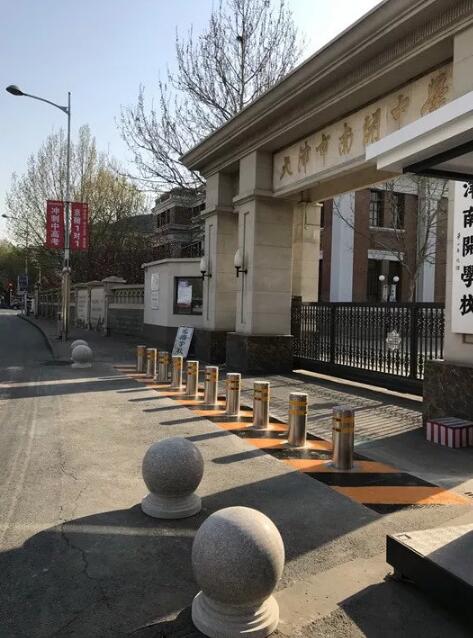 南開中學(xué)所有的校園出入口都配備升降地柱守護(hù),有效防范車輛沖撞事故的發(fā)生。