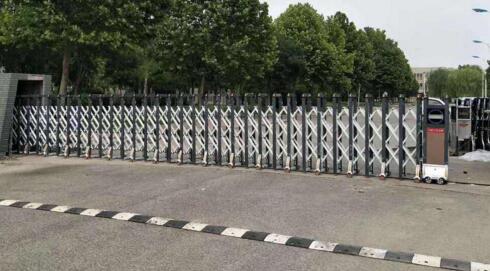 杭州電動伸縮門門體采用優(yōu)質(zhì)不銹鋼及鋁合金專用型材制作,采用平行四邊形原理鉸接,伸縮靈活行程大,給綠城曉風印月項目不一樣的體驗。