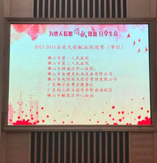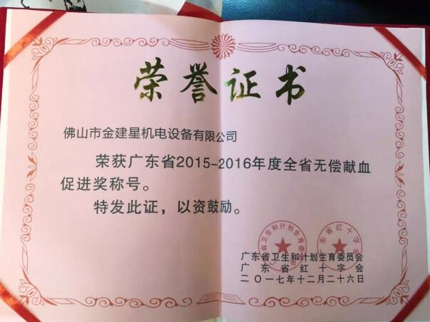 廣東省佛山市政府舉行了以“為他人著想,捐獻(xiàn)熱血,分享生命”為主題的世界獻(xiàn)血者日活動?;顒由?,黃董事長個人及公司榮獲無償獻(xiàn)血促進(jìn)單位獎及個人無償獻(xiàn)血促進(jìn)獎等多項獎項,建星智能科技有限公司連續(xù)八年,每年都自發(fā)組織無償獻(xiàn)血行動,黃錦山董事長以身作則,帶領(lǐng)著全公司員工及家人踴躍參與無償獻(xiàn)血行動。