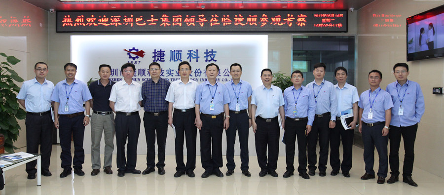 5月16日下午,深圳巴士集團(tuán)赴捷順科技參觀考察,參加考察的有巴士集團(tuán)總經(jīng)理王慧農(nóng)、副總經(jīng)理范章順、副總經(jīng)理袁虎勇以及集團(tuán)相關(guān)部室負(fù)責(zé)人。