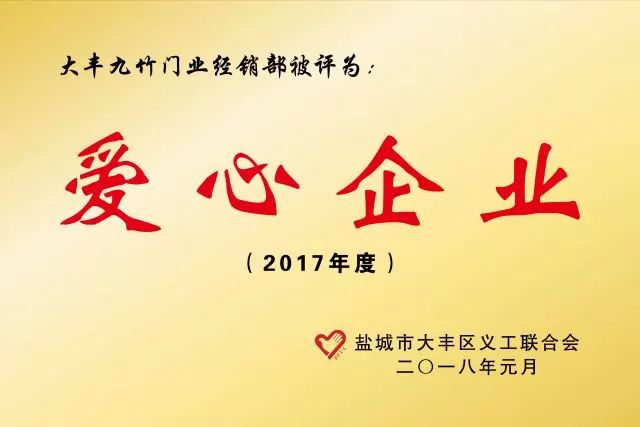 吳建東說:儒家講“成人達己”,幫助別人的同時也成就自己。九竹電動門公司大豐門業(yè)經(jīng)銷部還被評為2017年度“愛心企業(yè)”,全體九竹人都要向我們大豐經(jīng)銷商學習,做一些對社會有用的公益活動。