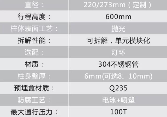 經(jīng)公安部第三研究所檢驗,百勝液壓一體自動升降地柱BS602符合GA/T1343-2016《防爆升降式阻車路障》標準要求,阻擋能力等級為B2。