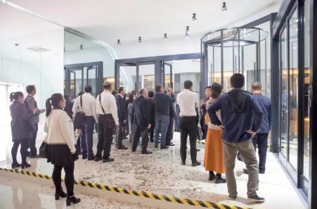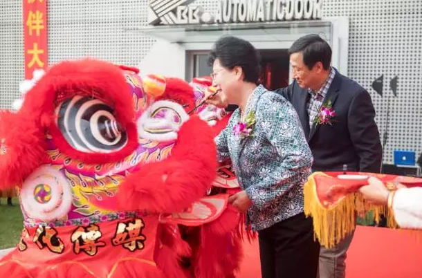 獅子點(diǎn)睛環(huán)節(jié)結(jié)束后,全場嘉賓被引入新產(chǎn)品展區(qū)。此次發(fā)布的新產(chǎn)品包括了平衡門系列、自動平推門系列、無框緊急打開和助力門系列。凱必盛團(tuán)集董事長石建立先先、集團(tuán)總經(jīng)理陳旭先生以及BCS公司W(wǎng)ILLIAMS先生共同為新產(chǎn)品揭幕。