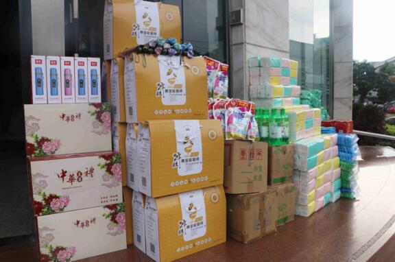 活動(dòng)獎(jiǎng)品琳瑯滿目,包括保溫杯、碗禮盒、太陽(yáng)傘、空調(diào)被、超能洗衣粉、清風(fēng)抽紙、立白洗潔精、心相印紙巾、瑞士卷面包、王老吉涼茶、好麗友派面包、糖果等,讓現(xiàn)場(chǎng)員工心動(dòng)不已。