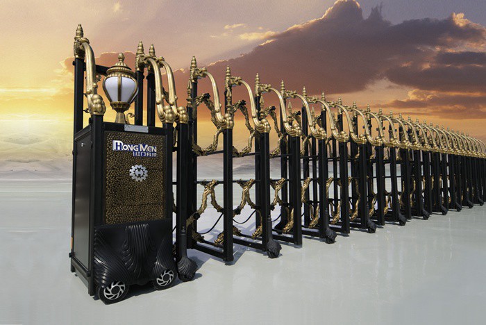 伸縮門就是門體可以伸縮自由移動,來控制門洞大小、來控制行人或車輛的攔截和放行的一種門。伸縮門主要由門體、驅(qū)動電機(jī),滑道、控制系統(tǒng)構(gòu)成。門體采用優(yōu)質(zhì)不銹鋼及鋁合金專用型材制作,采用平行四邊形原理鉸接,伸縮靈活行程大。驅(qū)動器采用特種電機(jī)驅(qū)動,蝸桿蝸輪減速,并設(shè)有自動離合或手動離合器,自動離合停電時可自動啟閉,手動離合停電時可手動啟閉,控制系統(tǒng)有控制板,按鈕開關(guān),另可根據(jù)需求配備無線遙控裝置。