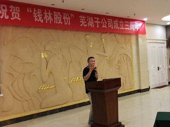 宴會(huì)伊始,北京南陵商會(huì)會(huì)長(zhǎng)萬(wàn)明先生對(duì)“錢(qián)林股份”蕪湖子公司成立三周年發(fā)表致辭,萬(wàn)會(huì)長(zhǎng)就蕪湖子公司在南陵的發(fā)展做出的重要貢獻(xiàn)給予肯定,并對(duì)于子公司未來(lái)的發(fā)展寄于厚望,希望蕪湖子公司能夠不忘初心,穩(wěn)扎穩(wěn)打,以更好的產(chǎn)品回饋社會(huì)。