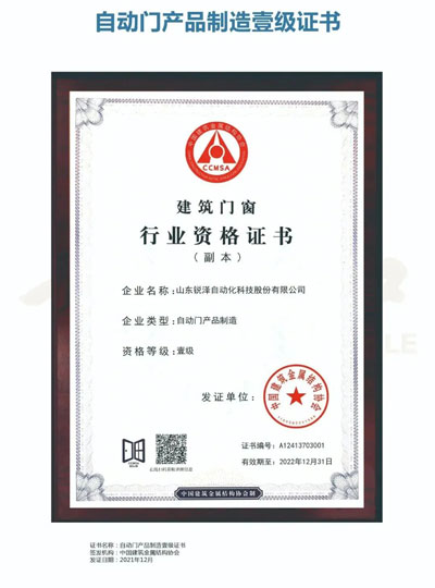 守匠于心,精進于行,二十年潛心積淀,銳澤正一步一個腳印發(fā)展壯大。自動門產(chǎn)品制造、安裝雙壹級資質(zhì)的取得,既是肯定和認可,同時也是激勵與鞭策。未來,我們將不斷研發(fā)創(chuàng)新,深化服務,延伸品牌影響力,推進企業(yè)實現(xiàn)更大的發(fā)展!