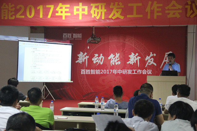 2017年8月7日,“百勝智能2017年中研發(fā)工作會議”在百勝智能總部隆重召開。百勝智能董事長劉潤根先生、董事長助理劉子堯先生、艾視特總經(jīng)理劉小超先生、百勝智能總經(jīng)理助理黃永恒、采購總監(jiān)熊祥,百勝及聯(lián)勝研發(fā)部、銷售部、品質(zhì)部、工藝部負(fù)責(zé)人,及百勝智能、聯(lián)勝智能全體工程師(60余人),9個營銷中心、辦事處負(fù)責(zé)人共同出席會議!