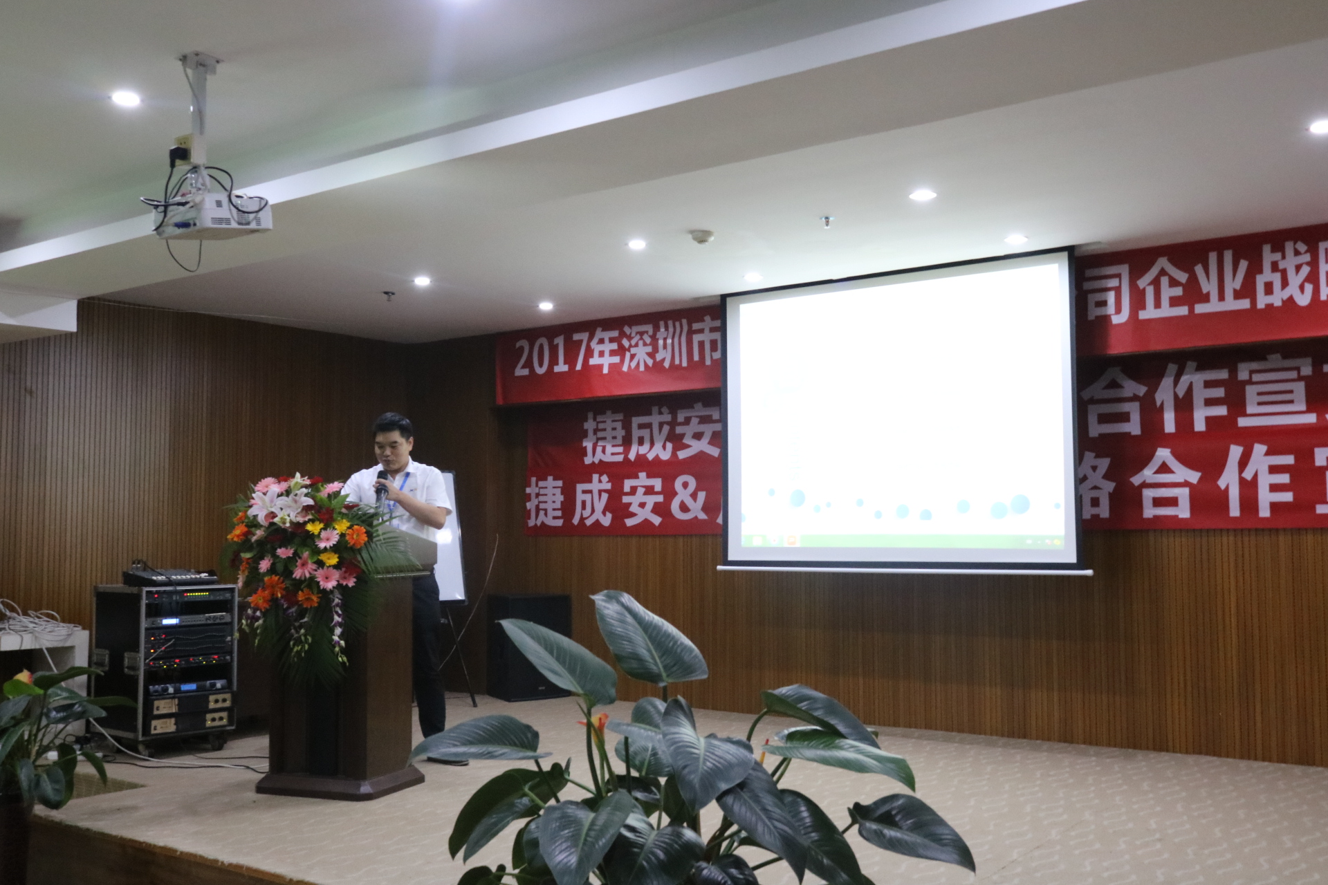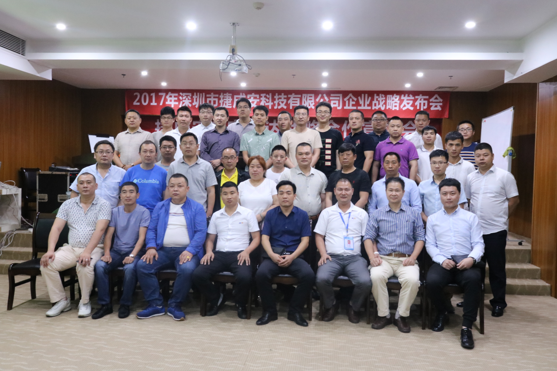 2017年5月22日,以“攜手同行,合作共贏”為主題的2017捷成安品牌戰(zhàn)略發(fā)布會(huì)在觀瀾海林酒店5樓會(huì)議室盛大舉行,來自全國各地的部分經(jīng)銷商和公司代表齊聚一堂,共襄盛會(huì)。