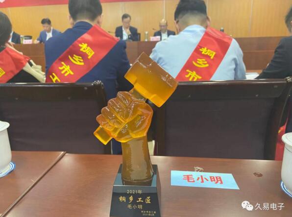久易科技副總經(jīng)理、高級工程師毛小明同志榮獲“桐鄉(xiāng)工匠”稱號,在會上受到表彰。