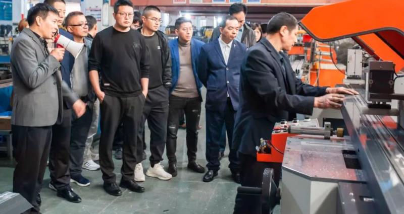 隨后,伙伴們參觀了鷹勝煌工業(yè)4.0自動(dòng)化生產(chǎn)線,自動(dòng)化激光切割等數(shù)字車間,共同探討生產(chǎn)環(huán)節(jié)的技術(shù)革新和細(xì)節(jié)要求。胡董現(xiàn)場為合作伙伴們講解智能化生產(chǎn)的各個(gè)要領(lǐng)和品質(zhì)要求,為合作伙伴輸出鷹勝煌創(chuàng)新優(yōu)服,匠心德質(zhì)的企業(yè)文化。