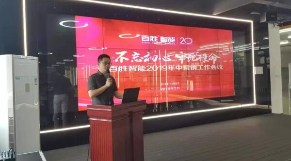 2019年7月6日,“百勝智能2019年中營銷工作會議”在百勝小藍基地隆重召開。百勝智能董事長劉潤根先生、副總經(jīng)理劉子堯先生,百勝智能、艾視特等公司中高層領導,及全國31個區(qū)域經(jīng)銷商代表共同出席會議!